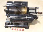 Was gehört zu dieser Gruppe?Mehrere andere Systeme zur Werteübertragung wurden entwickelt, konnten aber den Markt nie so dominieren wie Staffelwalze und Sprossenrad. Einige davon waren für Motorantrieb und/oder Automatisierung sogar besser geeignet. Aber z.B. mit Comptometern kann man doch auch...?Ja, auf Comptometern und vielen anderen Geräten kann man mit speziellen Verfahren (z.B. durch Verwendung von Reziprokwerten oder Zehner-Komplementen) auch subtrahieren, multiplizieren und dividieren. Doch dafür ist dann wieder einige Kopfarbeit nötig. |