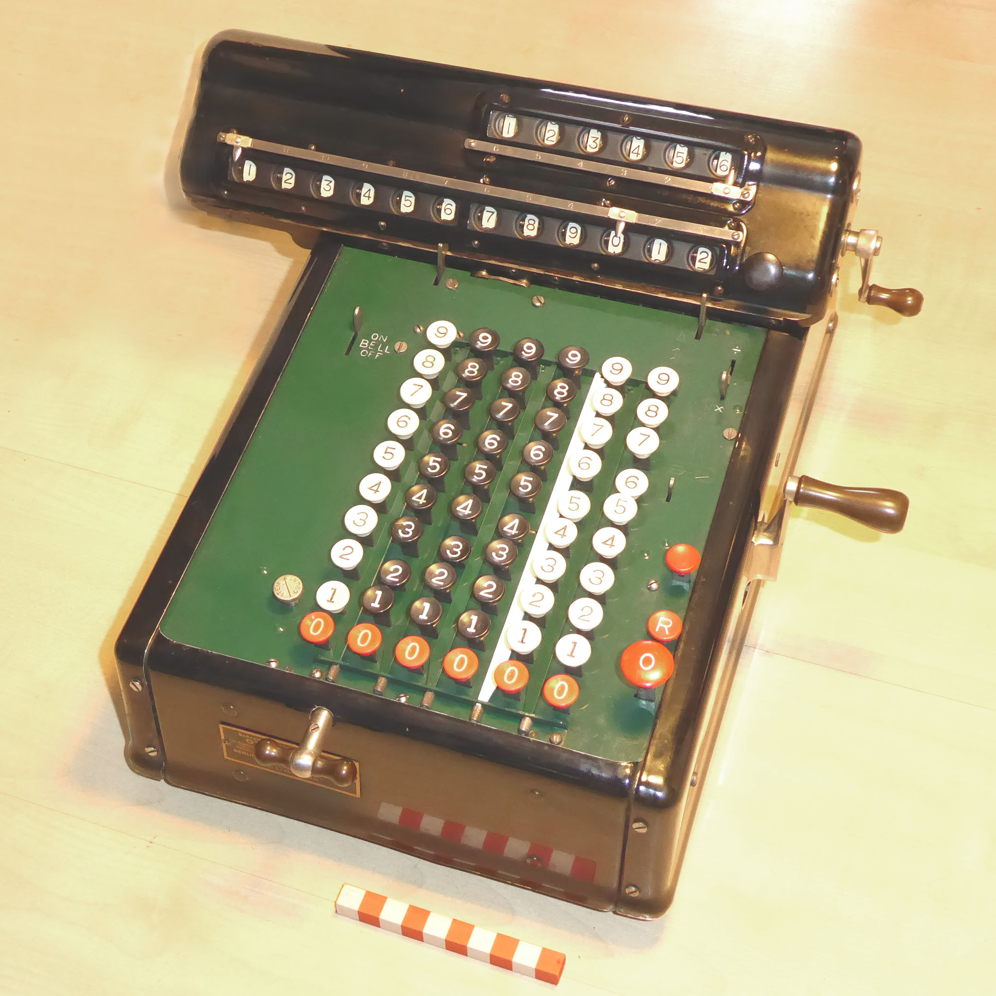 Für alle, die nicht so im Thema sind, hier die Erklärung einiger Fachbegriffe: AdditionsmodusDas Drücken der „Plus“-Taste zählt nicht nur den Wert der Eingabe zum Resultatwerk hinzu, sondern KapazitätIm Zusammenhang mit Rechenmaschinen nur ein anderes Wort für die Stellenzahl der Werke ... klingt aber gelehrter. Schalt(werks)prinzipienJede Zifferneingabe in eine Rechenmaschine muss erst irgendwie erfasst (und meist auch gespeichert) werden. Danach muss der gewünschte Wert natürlich auch seinen Weg zum Ergebnis finden. Zusätzliche Links:Youtube-Video: Staffelwalze (Schema) „Werke“ZehnerübertragWas passiert, wenn in einer Stelle "über die Neun hinaus" addiert werden muss, erklärt die Wikipedia ganz ausführlich. Aber nur die englische Wikipedia erklärt auch, warum die Mechanisierung dieses Vorgangs die größte Herausforderung beim Bau von Rechenmaschinen war. Weitere Erklärungen gewünscht? |